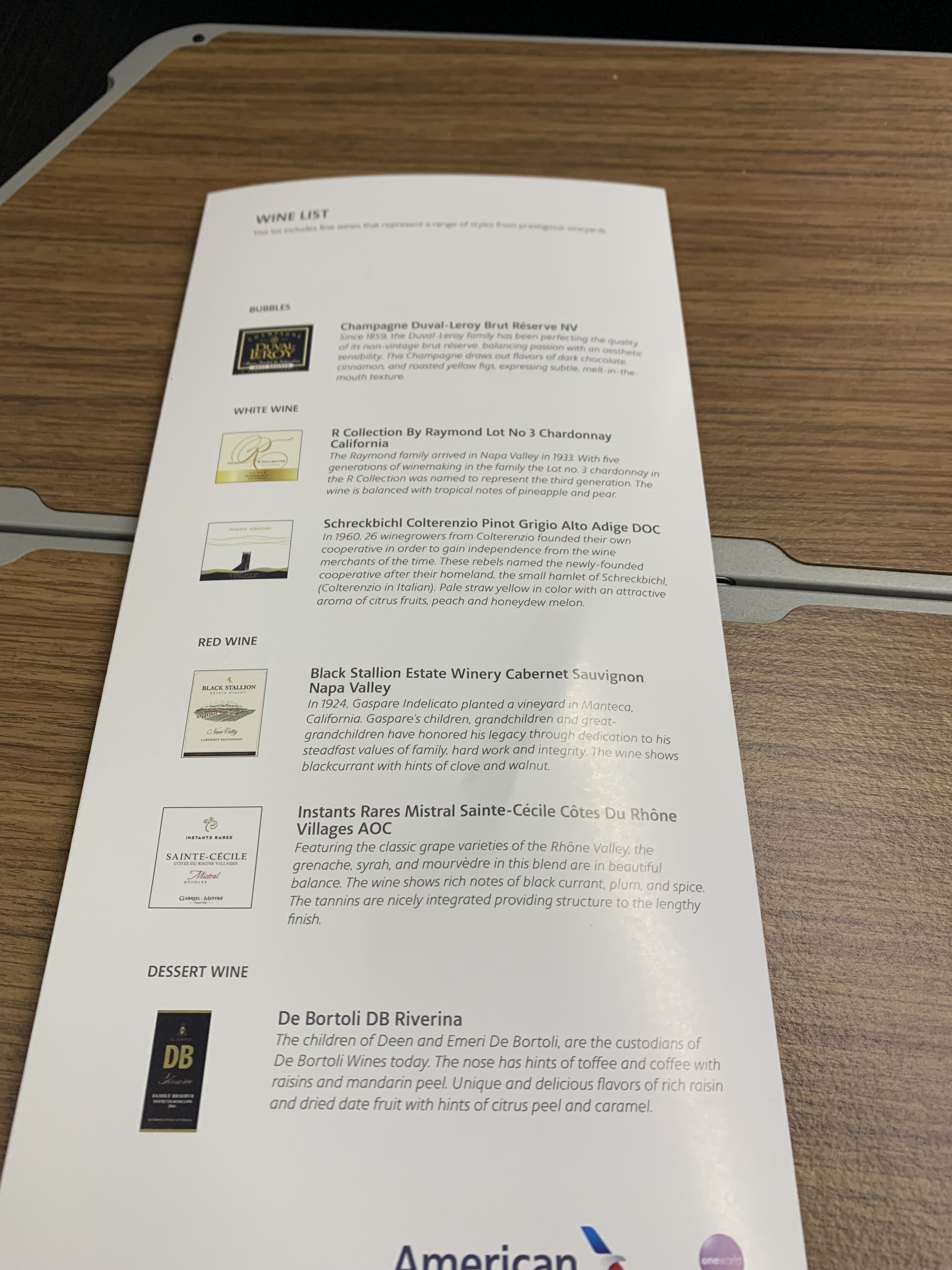 Depending how and where I fly, I find American’s dinner service to vary. Sometimes it’s offered as a 3-course meal and other times 2-course. Given the relatively short flight to London, I was happy for this to be service as a 2-course meal, which it was.