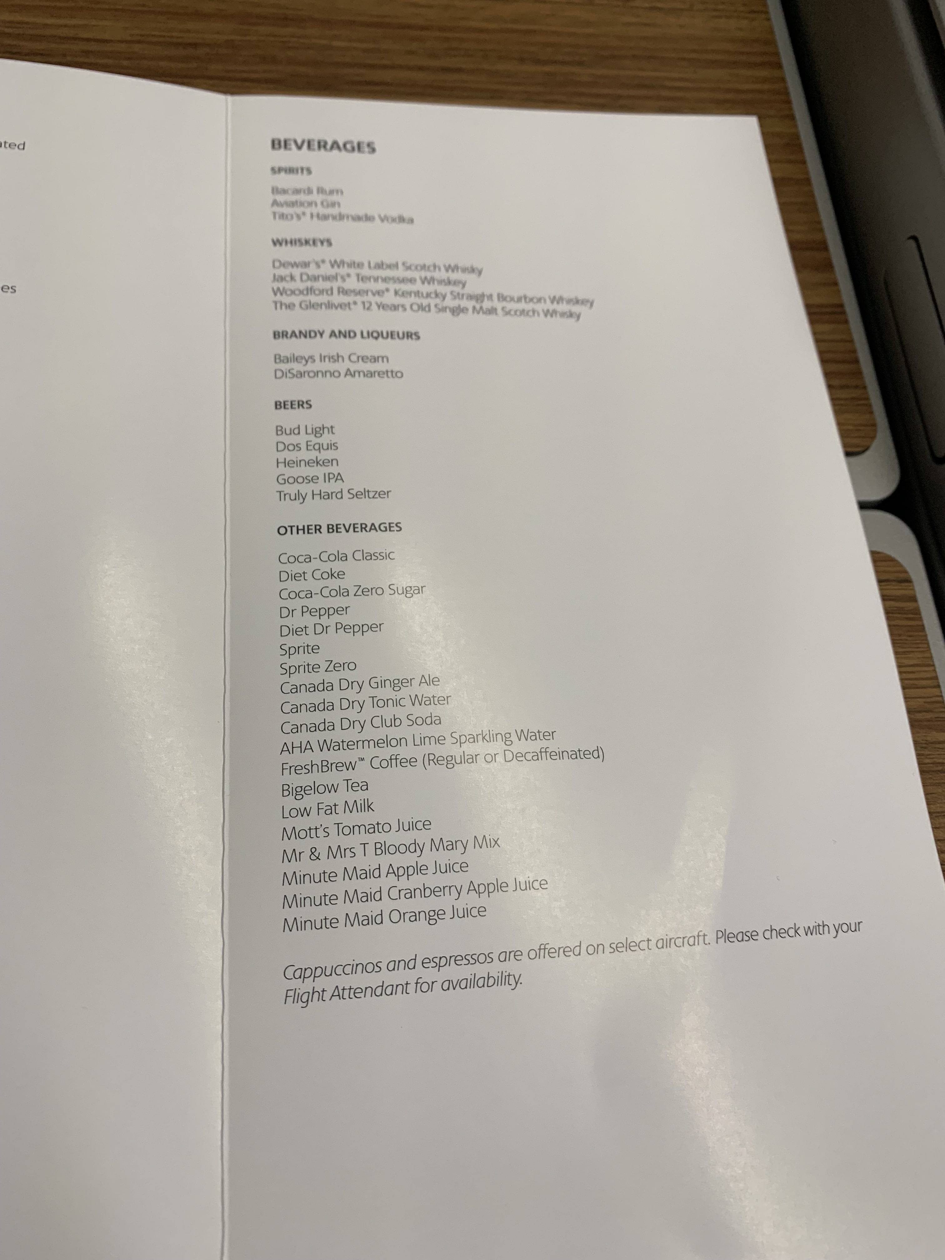 Other drinks offered a decent set of wines, beers and soft drinks. I generally find that American’s choices of wine are pretty good, and I was even offered a little wine taste – which was pretty good!