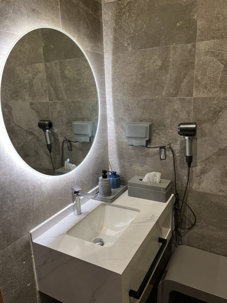 I did manage to access the shower, and was surprised (and pleased) to see the really good quality of showers – and even Dyson hairdryers!