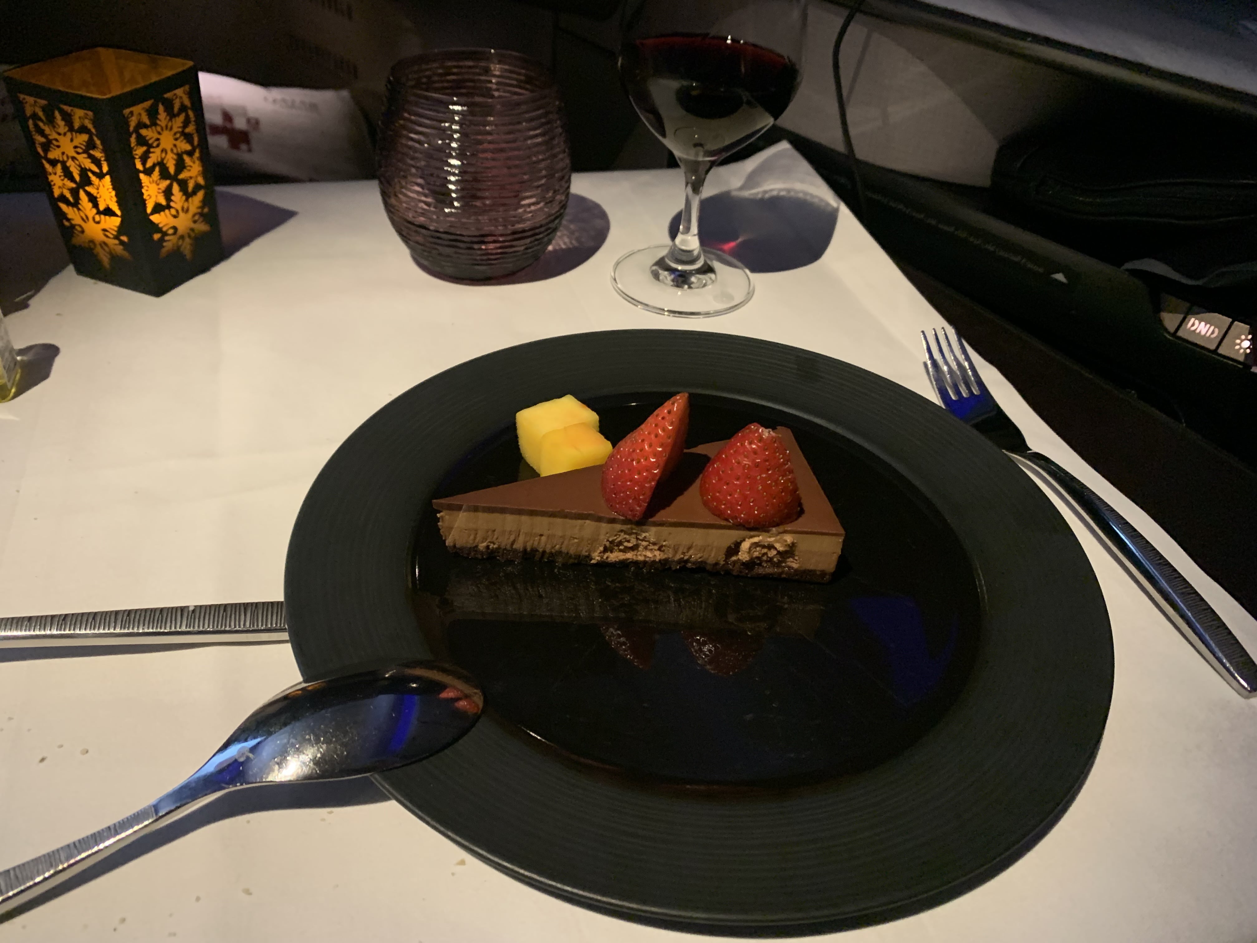 By this time we were very full, but on instance of the Cabin Crew were offered to try all of the deserts – so we did! They were very good too!