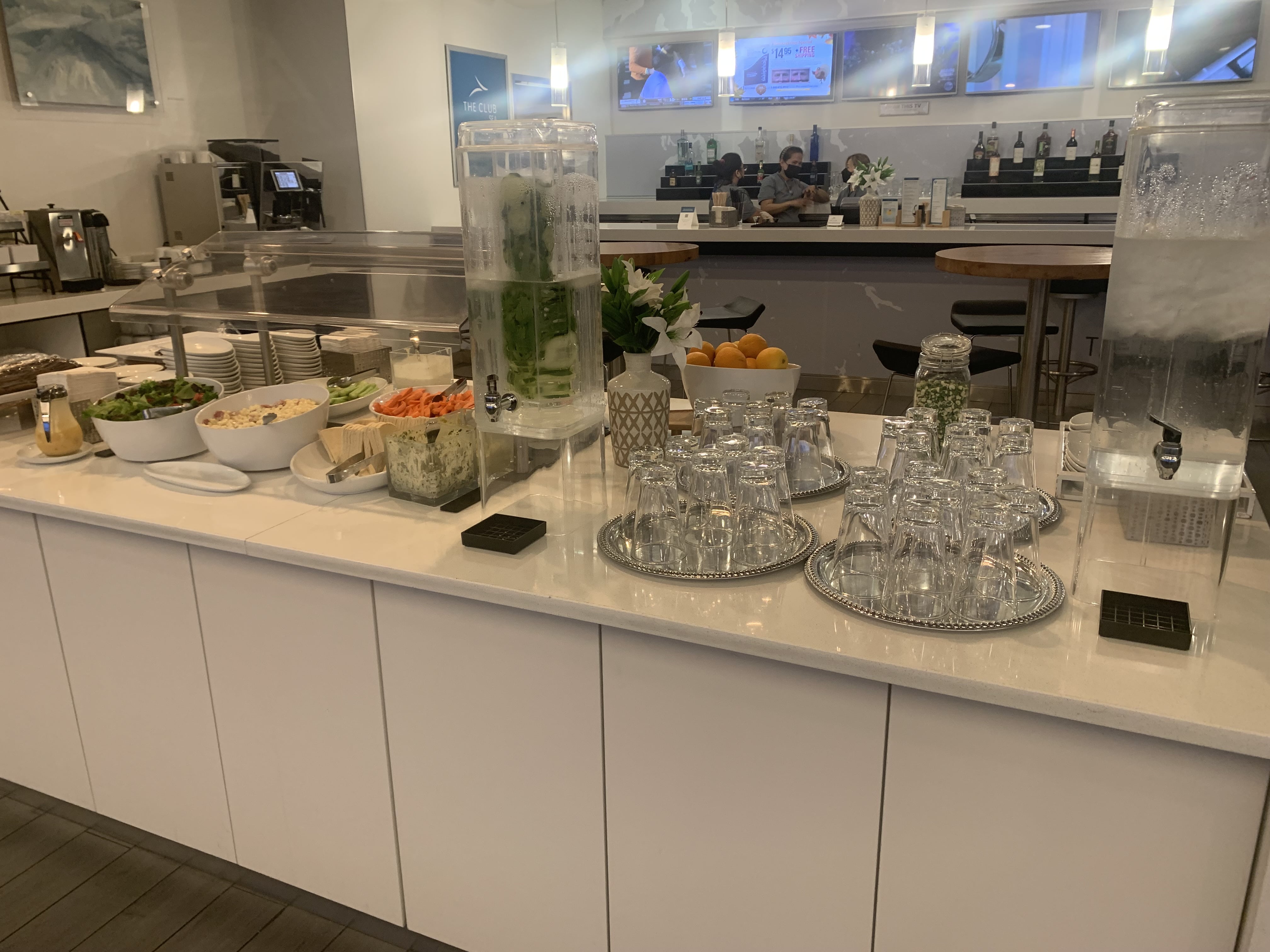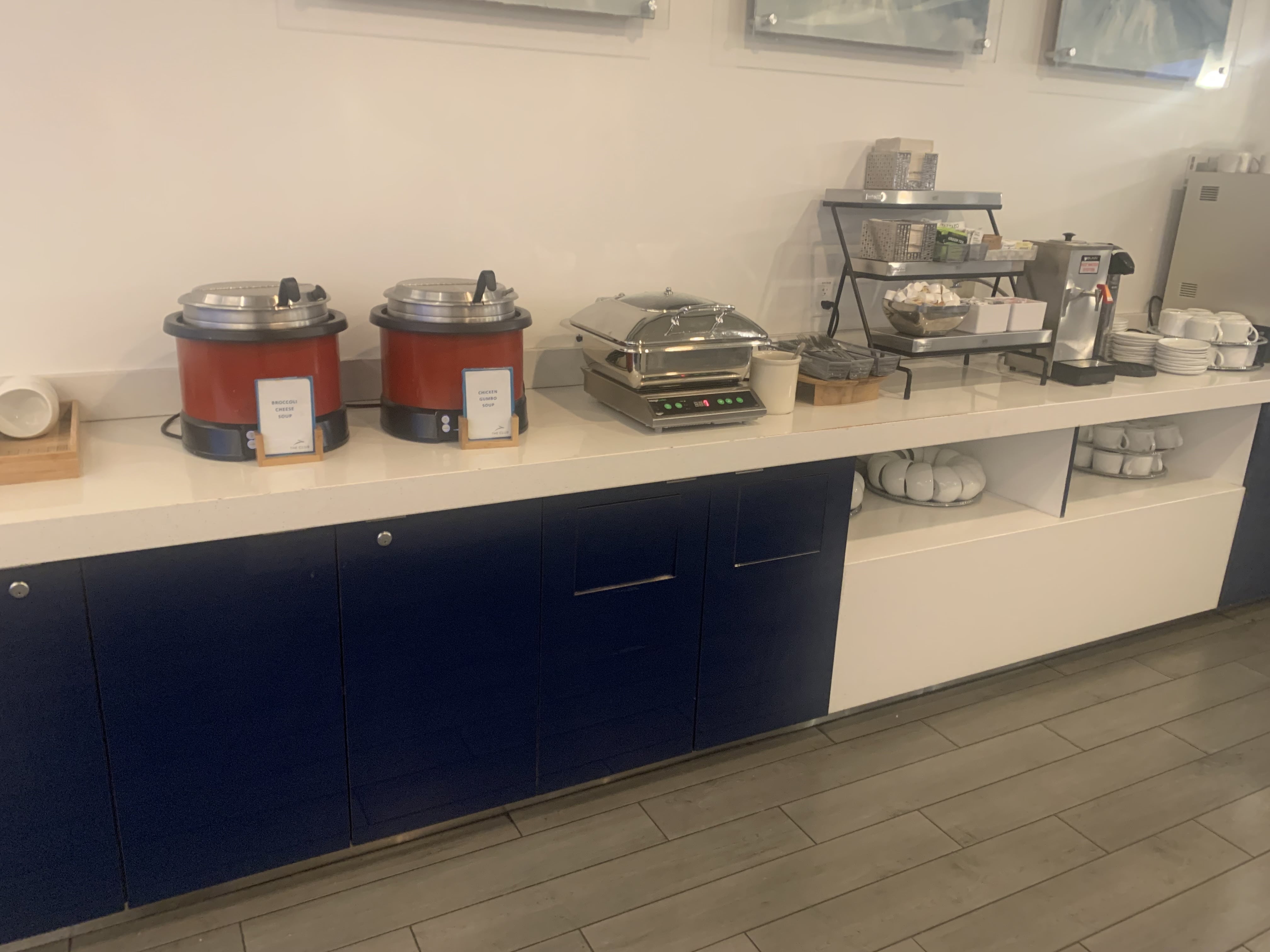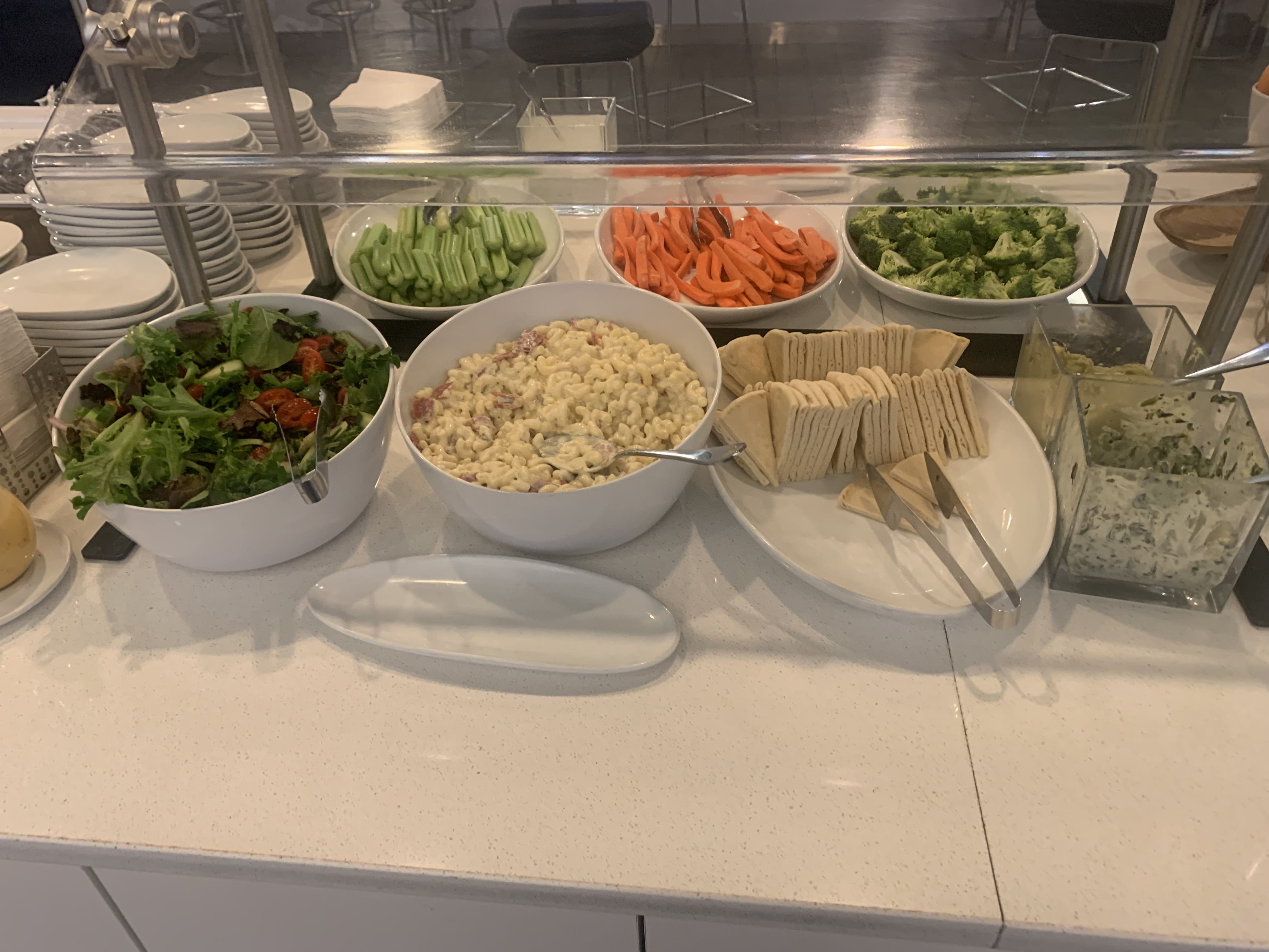 Similar to the A-Gates lounge, unlike other Clubs I’ve visited (Charlotte, for example), there is no menu to order from QR code. However, there is a small range of soups, salads, snacks and other things available. Sadly no 3-course meal here! I’d say this is mostly similar to The Club in LAS E-Gates.