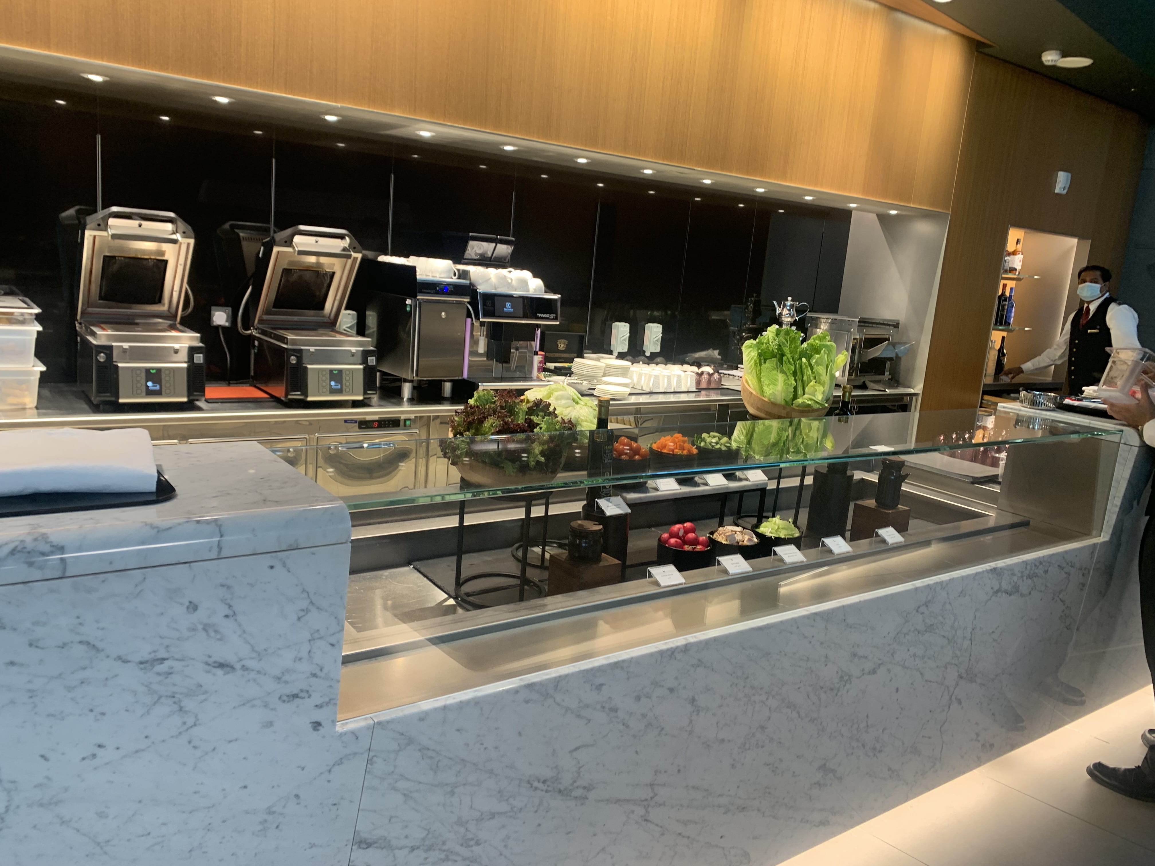 There are three different methods of grabbing something to eat in the Al Mourjan Lounge.