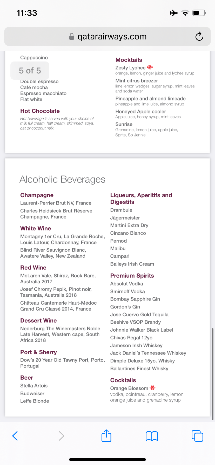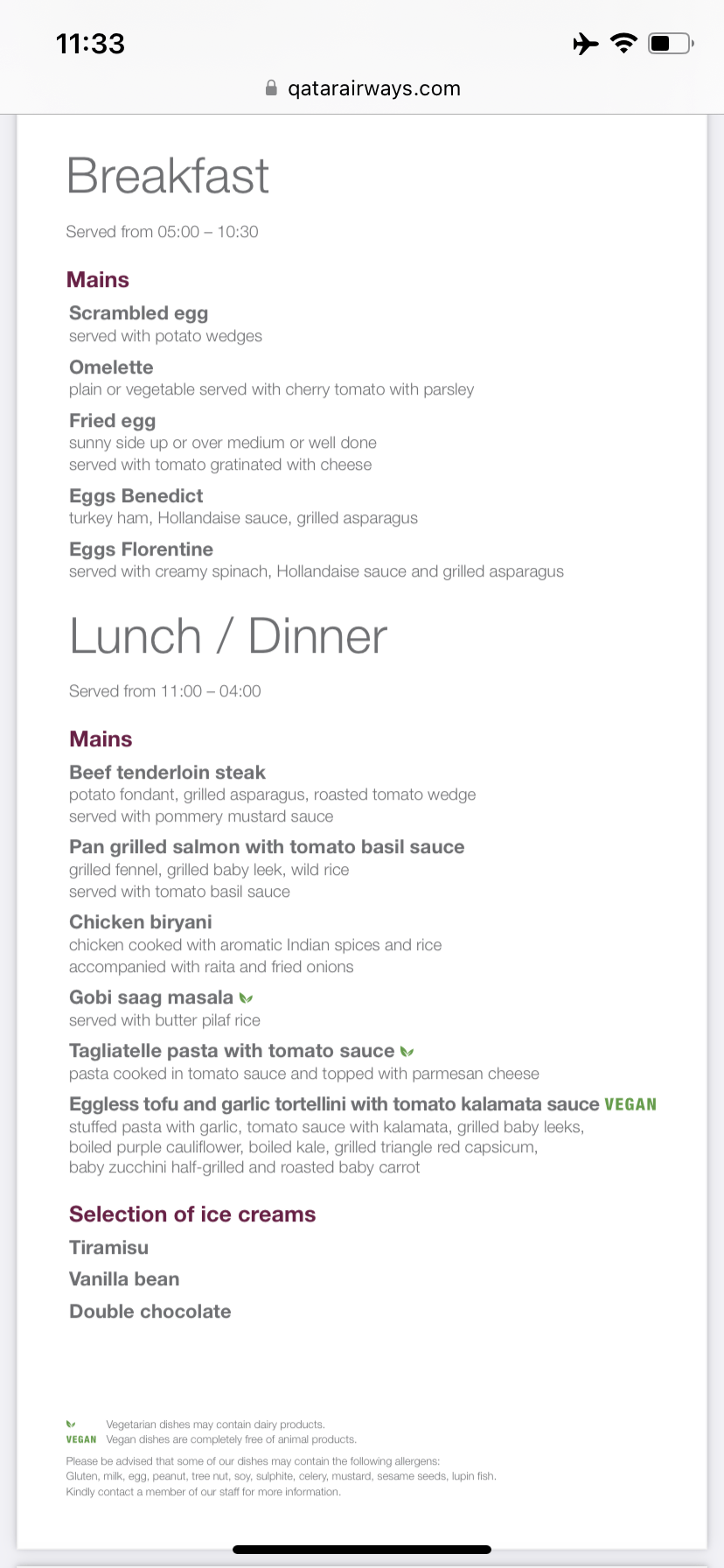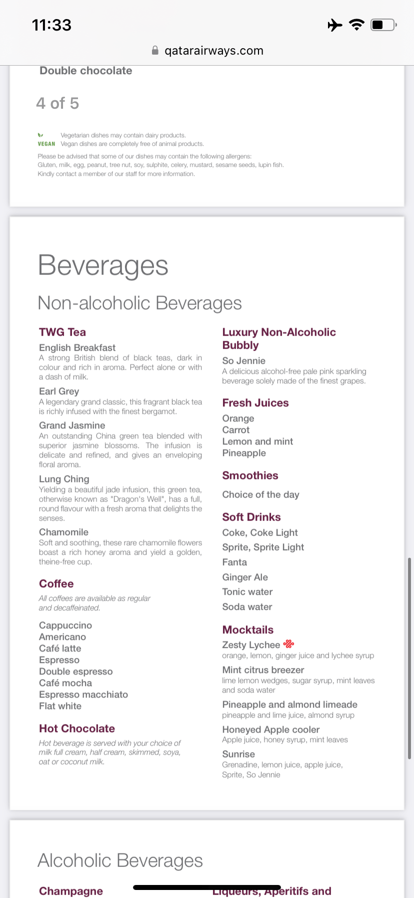 The third way is to use the a la carte menu which is available from QR codes on the tables. Sadly, having been rather full from breakfast, and knowing I was going to indulge on the next flight, I didn’t order anything – but the menu looks great!
